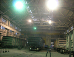 鐵路的檢修庫(kù)房的照明要求燈具抗震性能好,燈光亮度高,光源壽命長(zhǎng);燈光組合能為庫(kù)區(qū)不同工作人員提供安全、舒適的照明。