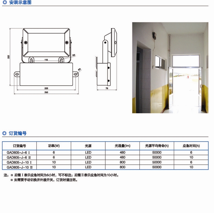 GAD605-J-6Ⅱ LED光源 6W 應(yīng)急時間:10小時
