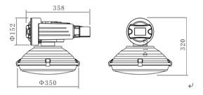 燈具外形及尺寸:規(guī)格型號(hào) 額定功率(W) 工作電流(A) 光源光通量(lm) 有效光通量(Plm) 建議安裝高度